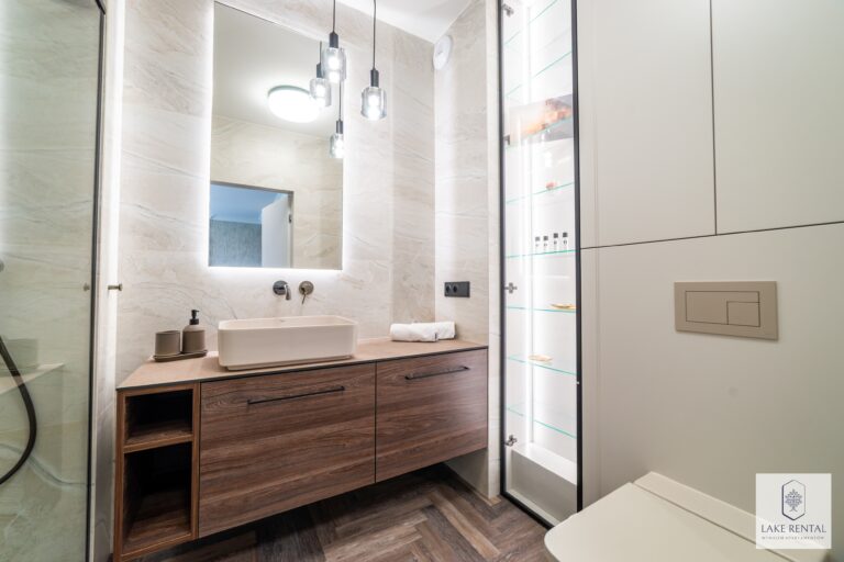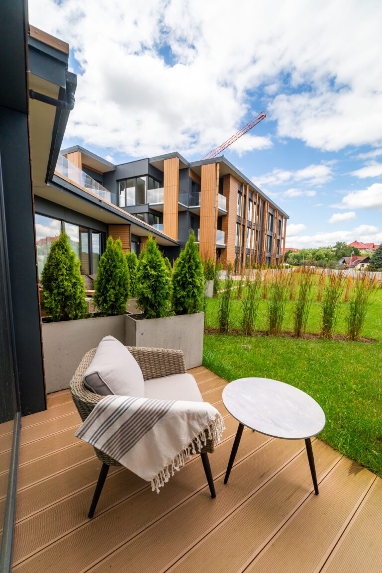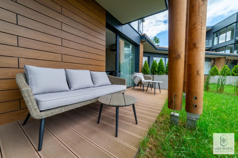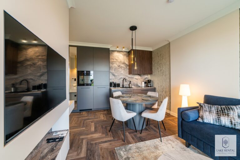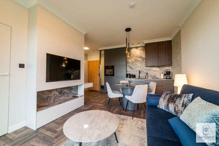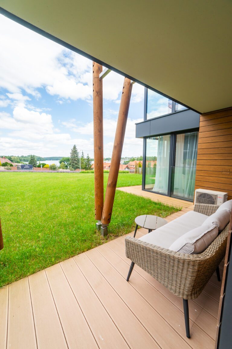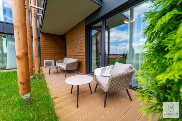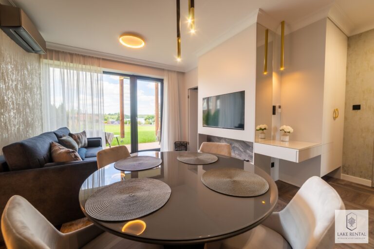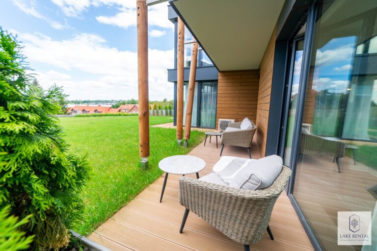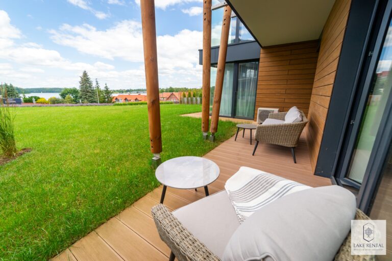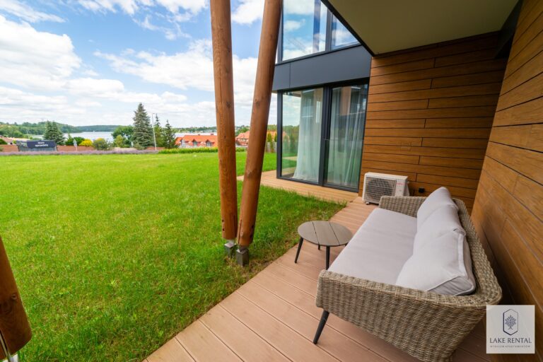 Pratum is an intimate housing estate of low buildings with modern architecture. Regular lines of luxurious interiors naturally shift the eye to the clear waters of Lake Tałta, which is located on the route of the Great Masurian Lakes. The favorable location of the estate ensures proximity to the bustling town of Mikołajki, and the character of the apartments provides a warm, homely atmosphere where you can properly relax.