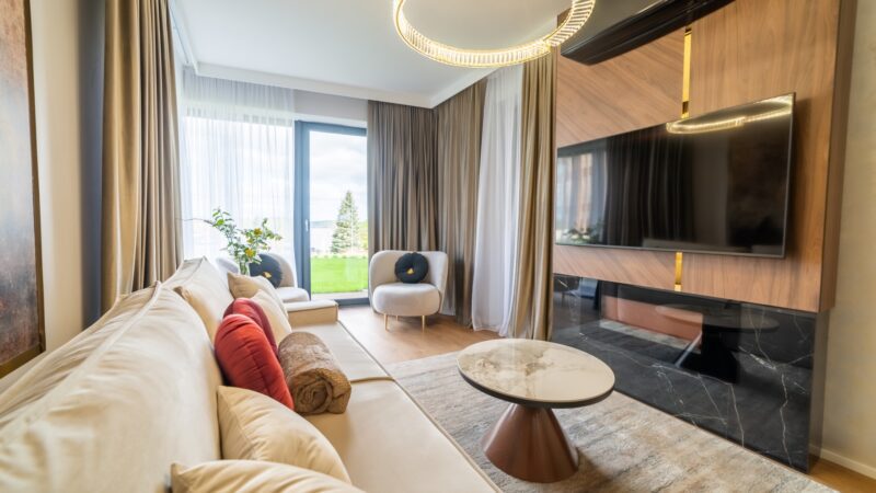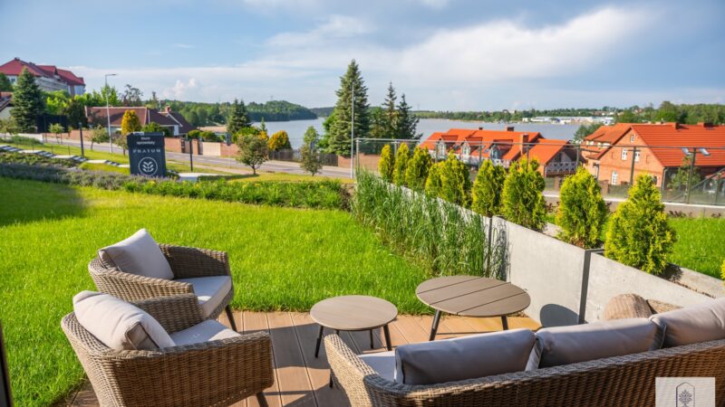 Pratum is an intimate housing estate of low buildings with modern architecture. Regular lines of luxurious interiors naturally shift the eye to the clear waters of Lake Tałta, which is located on the route of the Great Masurian Lakes. The favorable location of the estate ensures proximity to the bustling town of Mikołajki, and the character of the apartments provides a warm, homely atmosphere where you can properly relax.